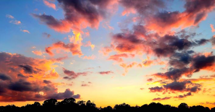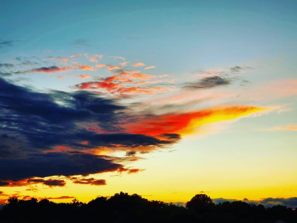 Photo taken in August of 2022 at Sunset. Our front yard offers amazing views of sunset over a tree lined ridge in the distance.