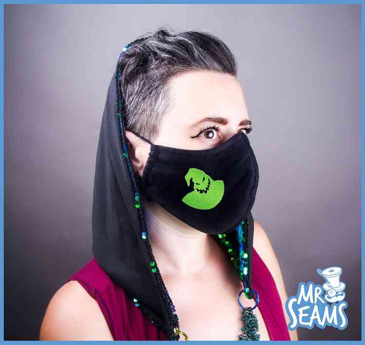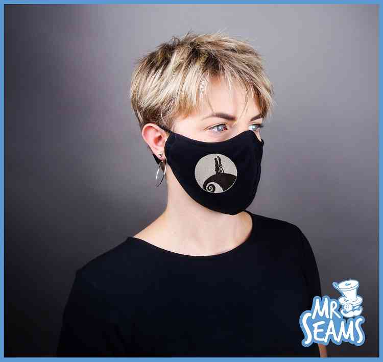 Show your love for Jack Skellington with this custom Nightmare Before Christmas face mask.